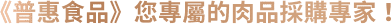 普惠食品企業(yè)股份有限公司於1985年成立至今,致力於提供臺(tái)灣食品業(yè)者來(lái)自於全球的優(yōu)質(zhì)牛肉、豬肉、雞肉、火雞肉品與海鮮,肉品批發(fā)與肉品加工分切服務(wù),最多元最專業(yè)的肉品進(jìn)口商與批發(fā)商。