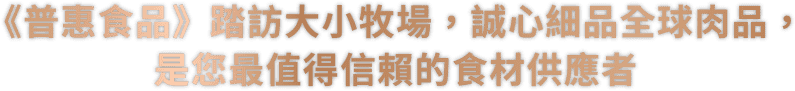 我們不只為了品質(zhì)不畏困難的走訪全球大小農(nóng)牧場(chǎng)!我們更擁有著強(qiáng)大的貿(mào)易團(tuán)隊(duì)提供您最專業(yè)的國(guó)際肉品價(jià)格走勢(shì)的分析讓您不必再畏懼市場(chǎng)的起伏不定!而我們的專業(yè)與35年來(lái)對(duì)品質(zhì)的堅(jiān)持,更使我們成為國(guó)際肉品大廠指定的代理商。